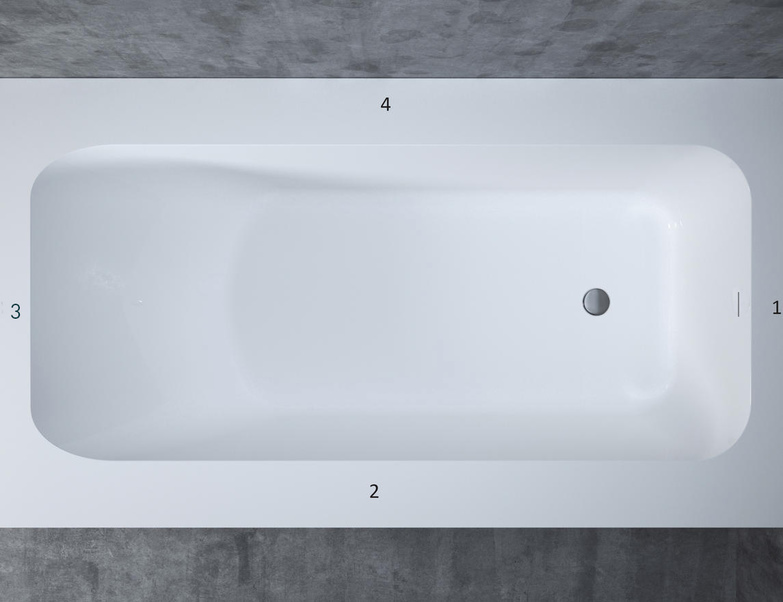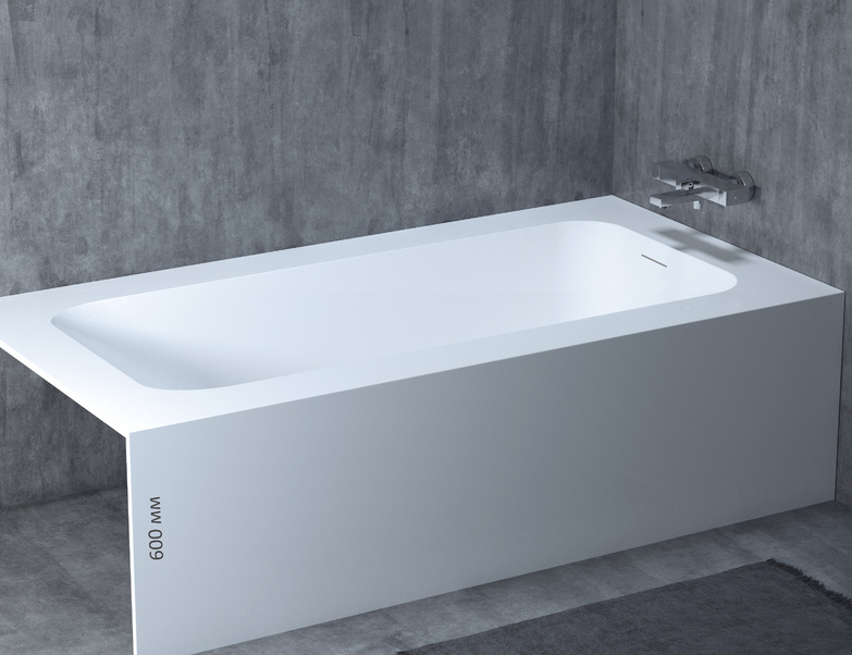 Комплектация: встраиваемая ванна с прямоугольной чашей, регулируемые ножки до 2 см, донный клапан "Up&Down" белый, сифон, интегрированный слив-перелив, ширина бортика от 2 до 15 см.