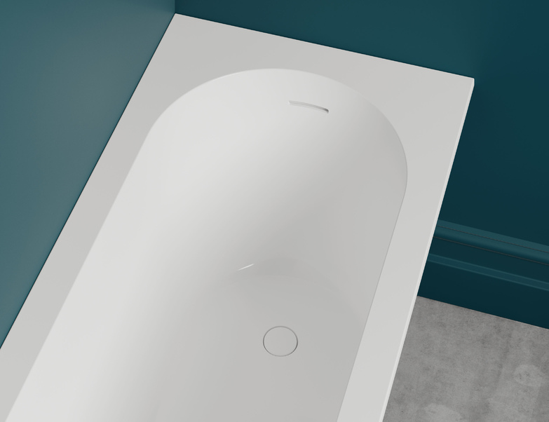Комплектация: встраиваемая ванна с овальной чашей, регулируемые ножки до 2 см, донный клапан "Up&Down" белый, сифон, интегрированный слив-перелив.