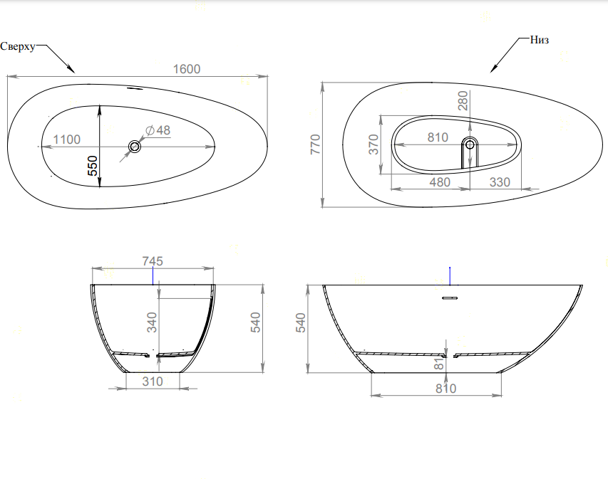 Комплектация: ванна, донный клапан "Up&Down" цвет на выбор (белый, хром, золото, бронза), сифон, интегрированный слив-перелив. Требуется подиум или углубление в полу.