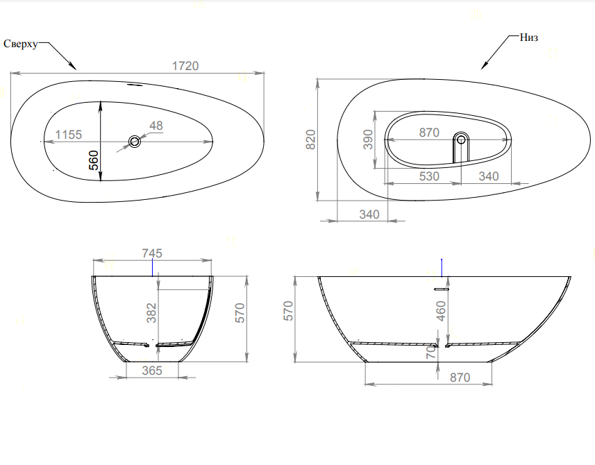Комплектация: ванна, донный клапан "Up&Down" белый, сифон, интегрированный слив-перелив. Требуется подиум или углубление в полу.