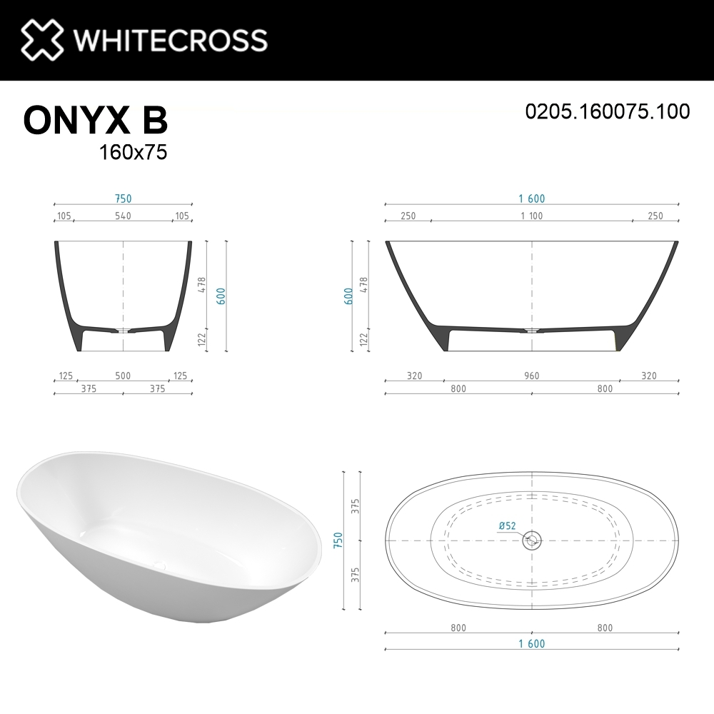Для создания ванны ONYX B используются материалы премиум класса, качество которых соответствует высочайшим стандартам.