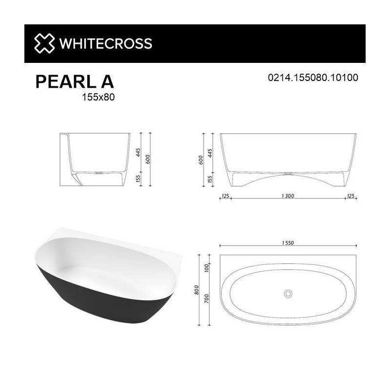 Польская ванна из искусственного камня WHITECROSS PEARL155х80 глянец черная белая - цена 340095 руб. Оформить заказ и купить ванну WHITECROSS PEARL155х80 глянец черная белая в Москве в нашем интернет магазине можно по телефону или добавив товар в корзину 🛒.