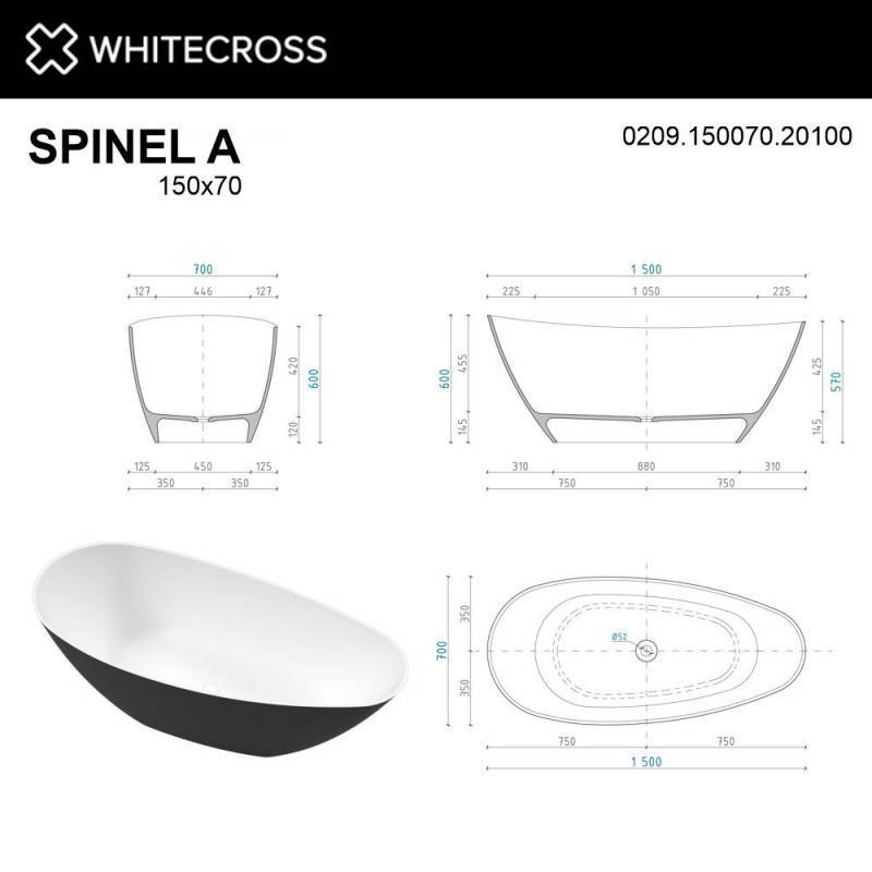 Польская ванна из искусственного камня WHITECROSS SPINEL150х70 черная белая - цена 274575 руб. Оформить заказ и купить ванну WHITECROSS SPINEL150х70 черная белая в Москве в нашем интернет магазине можно по телефону или добавив товар в корзину 🛒.