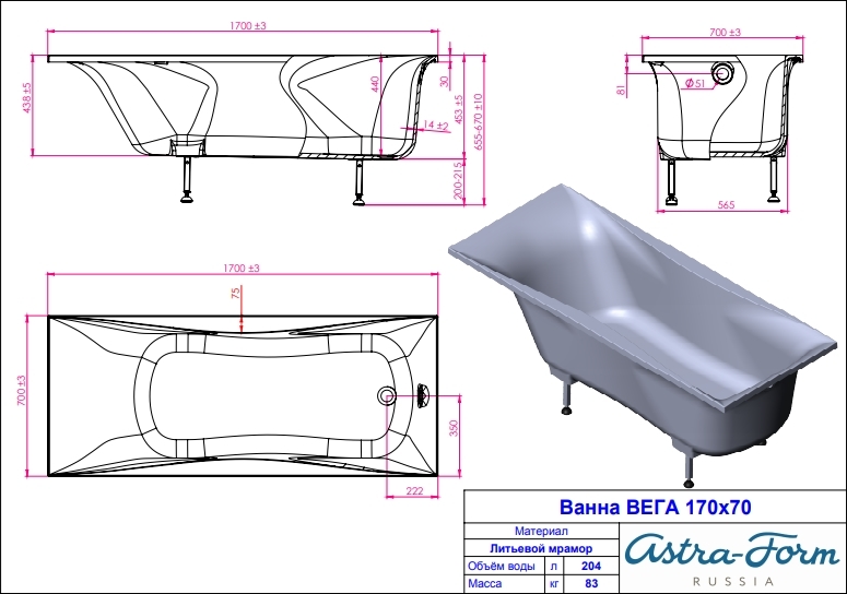 Российская ванна из искусственного камня Астра-Форм Вега 170х70 14 базовых цветов - цена 73749 руб. Оформить заказ и купить ванну Астра-Форм Вега 170х70 14 базовых цветов в Москве в нашем интернет магазине можно по телефону или добавив товар в корзину 🛒.