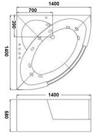 • Гидромассаж 2 больших и 6 маленьких джетов.